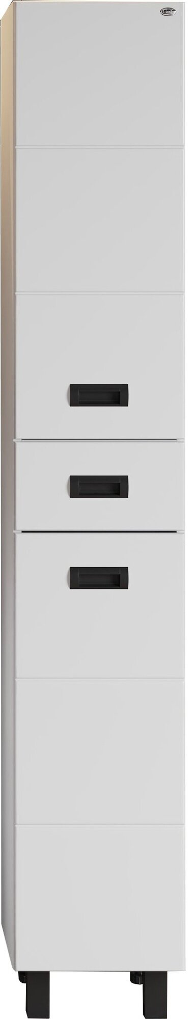 Пенал Onika БАЛТИКА 32.10 У - это простые функциональные формы и яркий акцент в любом дизайне. Глянцевый белый цвет фасада контрастирует с черной матовой фурнитурой, а ненавязчивая горизонтальная фрезеровка дополняет образ стильной и современной мебели. Удобный ящик с направляющими полного выдвижения посередине пенала и два больших отделения, разделенные горизонтальными полочками, за распашными дверями с механизмом плавного закрывания - отличное место для хранения необходимых вещей. Пенал имеет универсальную ориентацию: при установке верх и низ пенала можно менять местами, а дверцы могут открываться как влево, так и вправо. Корпус пенала выполнен из ЛДСП, фасад - из МДФ в пленке, устойчивых к механическим воздействиям, перепадам температур и высокой влажности. 2 декоративных и 2 пластиковых ножки с регулировкой по высоте идут в комплекте с пеналом.