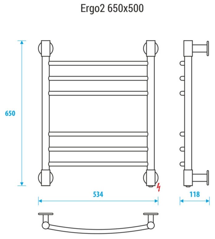 Energy Ergo2 650x500 RAL 9005 – электрический стационарный полотенцесушитель-лесенка черного матового цвета с шестью выпуклыми перемычками круглого сечения, выполненный из высококачественной пищевой нержавеющей стали. Для увеличения функциональности и полезной площади изделия рекомендуется приобрести полку Energy Modus2 500.Energy Ergo2 - второе поколение полотенцесушителей Energy Ergo. Новые полотенцесушители отличаются от предыдущих моделей увеличенной на 50 мм высотой и верхними кронштейнами, аналогичными нижним, что обеспечивает простоту установки и симметричность верха и низа полотенцесушителя.Нагревательный элемент прибора - греющий кабель в изоляции из кремнийсодержащей резины. Может быть подключен как скрытым, так и наружным способом. Подключение производится через правую нижнюю стойку. Оснащён влагозащищенным выключателем с индикатором работы.Полотенцесушитель экономичен в эксплуатации и сопоставим по энергозатратам с электрической лампочкой. Нагрев до рабочей температуры за 5-10 минут.Имеет II класс электрической защиты и степень защиты от влаги IP 44, не нуждается в заземлении и подходит для установки в помещениях с повышенной влажностью.Поверхность изделия окрашена по технологии цветного порошкового напыления - достоинства этой технологии в том, что получаемые изделия прочны, долговечны и экологичны.Производство: КНР.