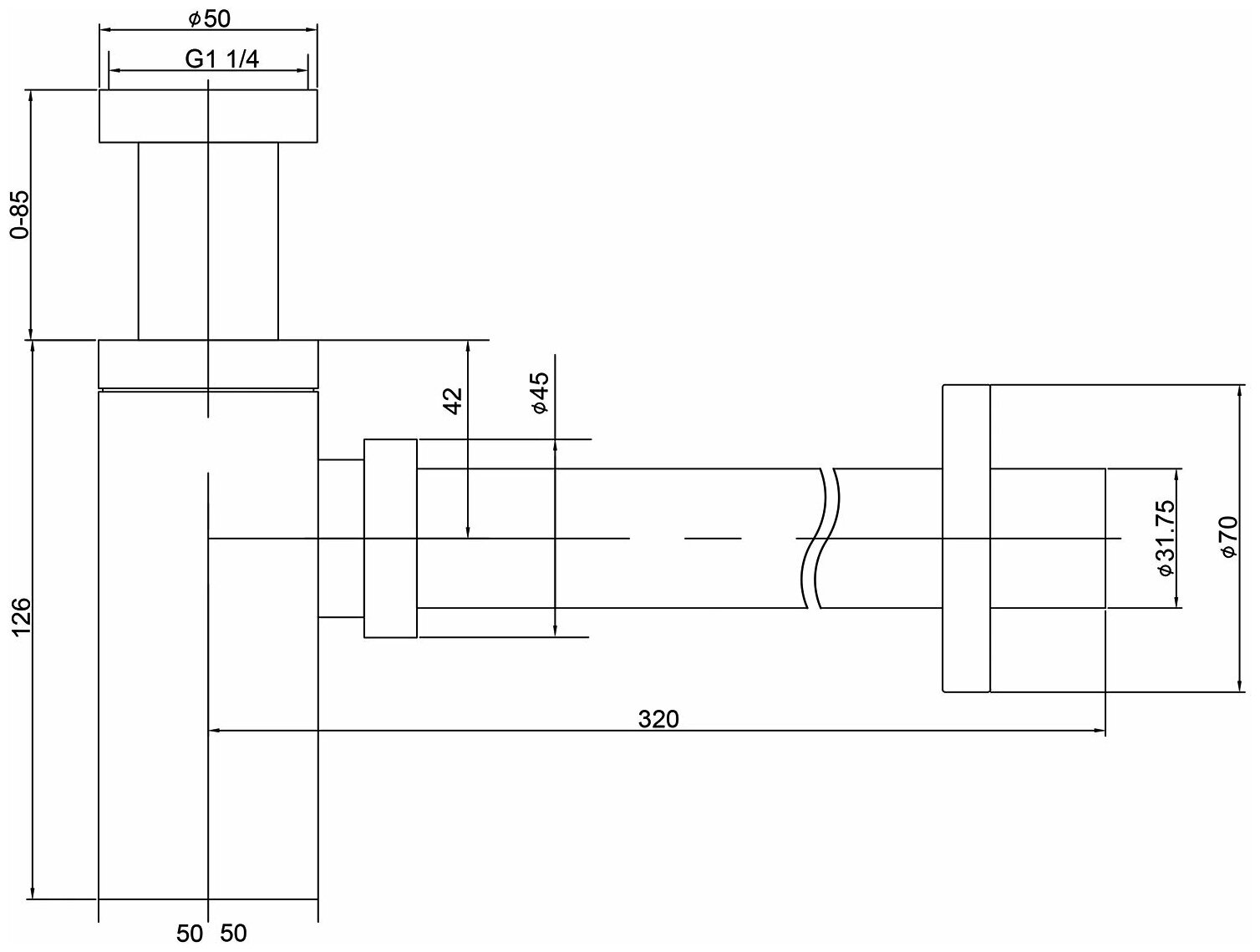 | Диаметр выпуска | 1 1/4", 50 мм |