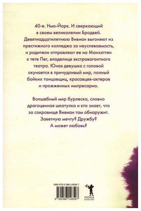 Локация у книги интересная - Нью-Йорк XX века. Мы много узнаем о закулисном мире театра. Главная героиня раздражающий персонаж для меня. Слог у автора легкий, страницы летели одна за другой. Повествование довольно динамичное, но никакого отклика не вызвала эта история. Сопереживать героине тоже не получилось. Она вызывала только раздражение.