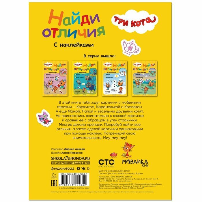Сервис сравнения цен СкидкаГИД предлагает сравнить цены на товар «Книга: Три кота Найди отличия В доме (Коллектив авторов); МОЗАИКА kids, 2023»