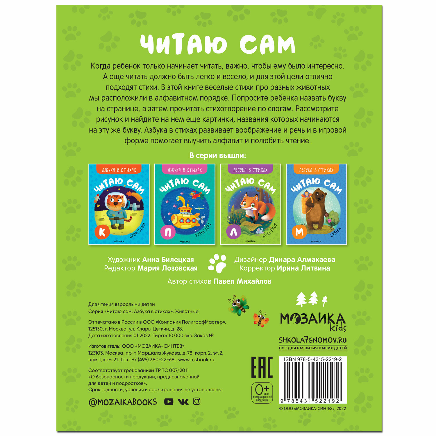 Читаю сам Азбука в стихах Животные (Михайлов Павел); МОЗАИКА kids, 2022