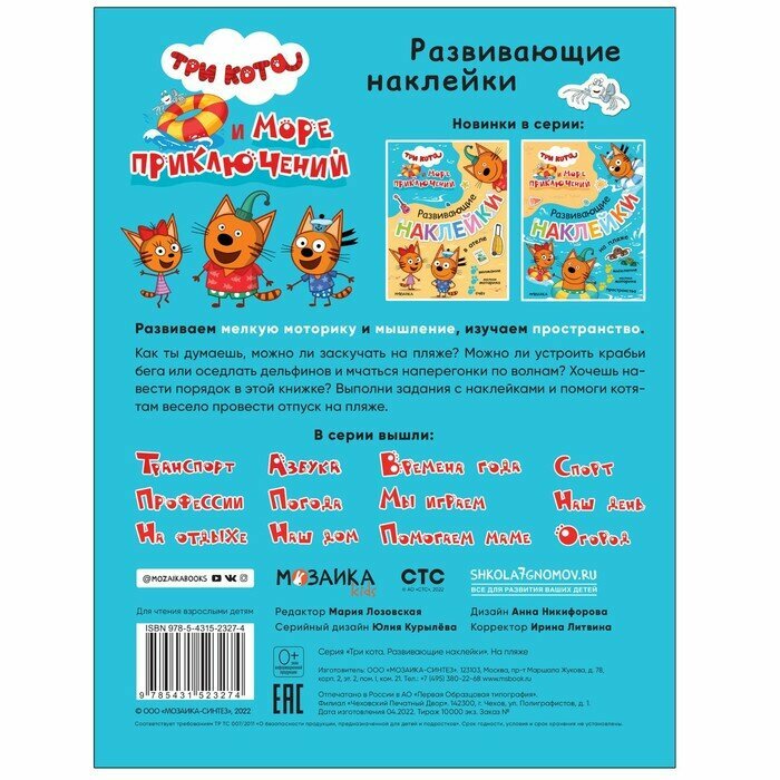 Три кота Развивающие наклейки На пляже (Лозовская Мария); МОЗАИКА kids, 2022