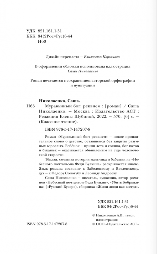 Книга: Муравьиный бог: реквием (Александра Николаенко); Издательство АСТ, 2022