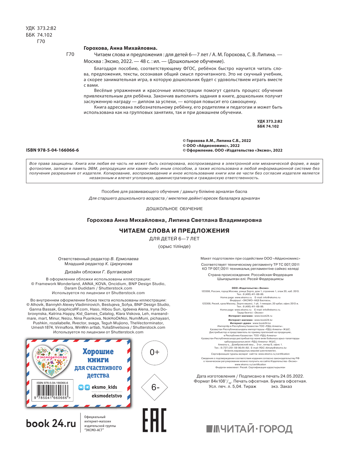 Читаем слова и предложения: для детей 6-7 лет (Липина Светлана Владимировна, Горохова Анна Михайловна); ООО "Издательство "Эксмо", 2022