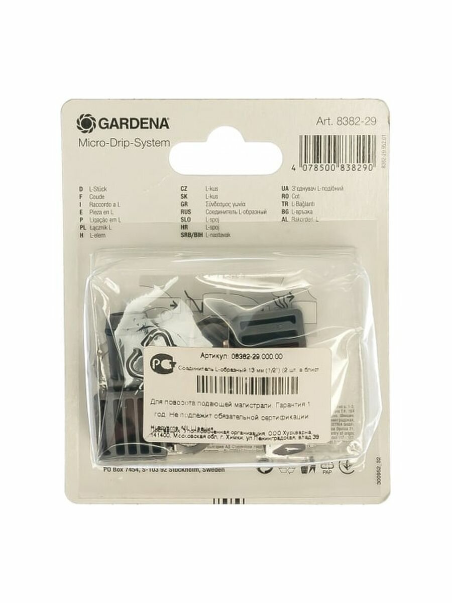 Соединитель L-образный Gardena 08381-29.000.00 входит в состав системы микрокапельного полива. Применяется для изменения направления подающего шланга. Технология Quick & Easy обеспечивает быстрое и надежное соединение.