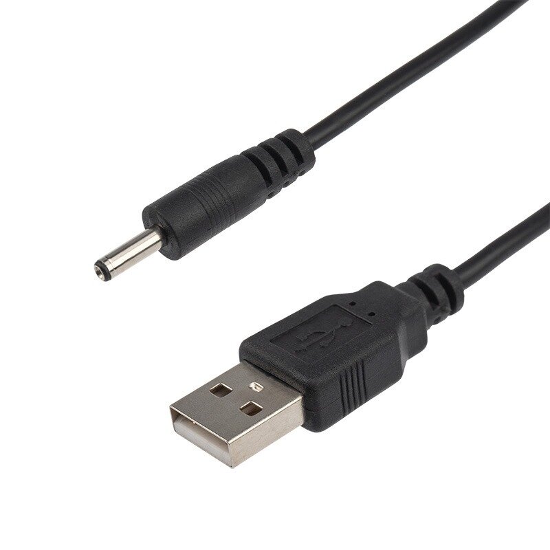 Кабель подключается с одной стороны к устройству с разъемом DC, а с другой — к USB разъему источника питания, которым в зависимости от ситуации может быть как специальная сетевая розетка с разъемом USB, так и сетевое зарядное устройство (СЗУ), автомобильного зарядного устройства (АЗУ) или внешний накопитель питания «power bank».