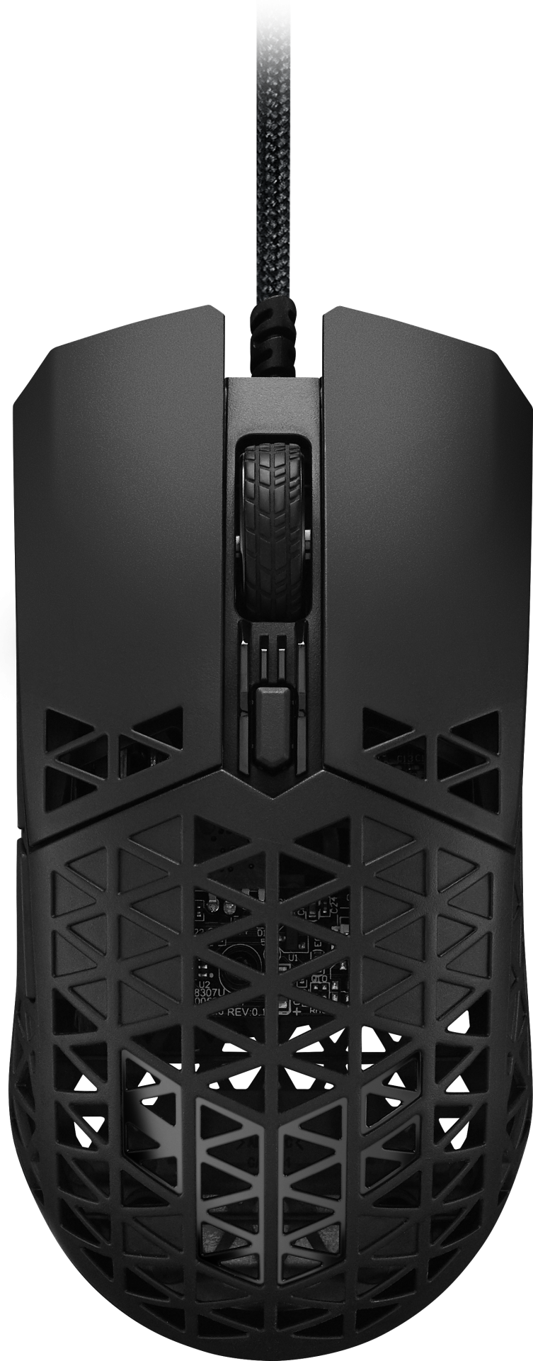 Вес мыши TUF Gaming M4 Air составляет всего 47 граммов благодаря ультралегкому корпусу Air Shell, в верхней части которого используется структурно прочная конструкция из полых треугольников.
