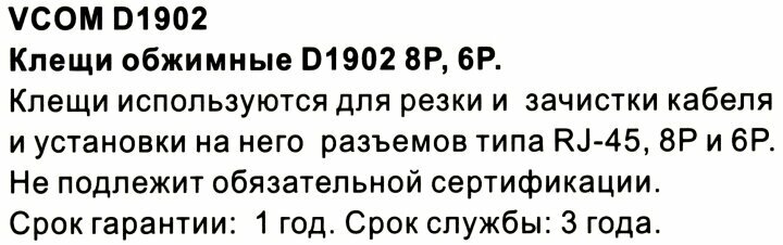 Сервис сравнения цен СкидкаГИД предлагает сравнить цены на товар «Клещи обжимные VCOM D1902»