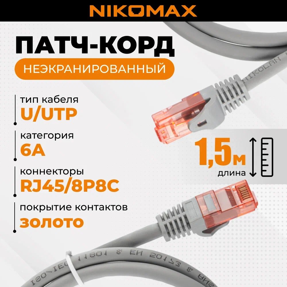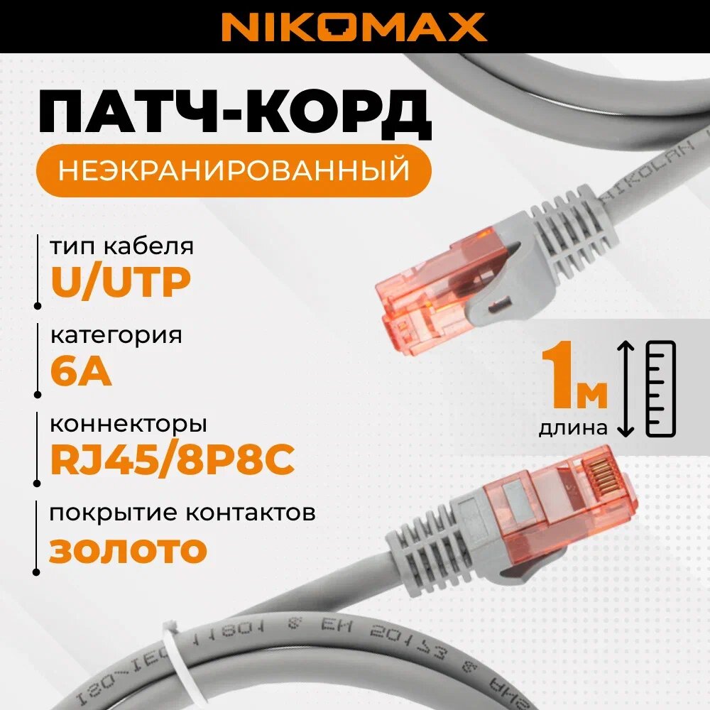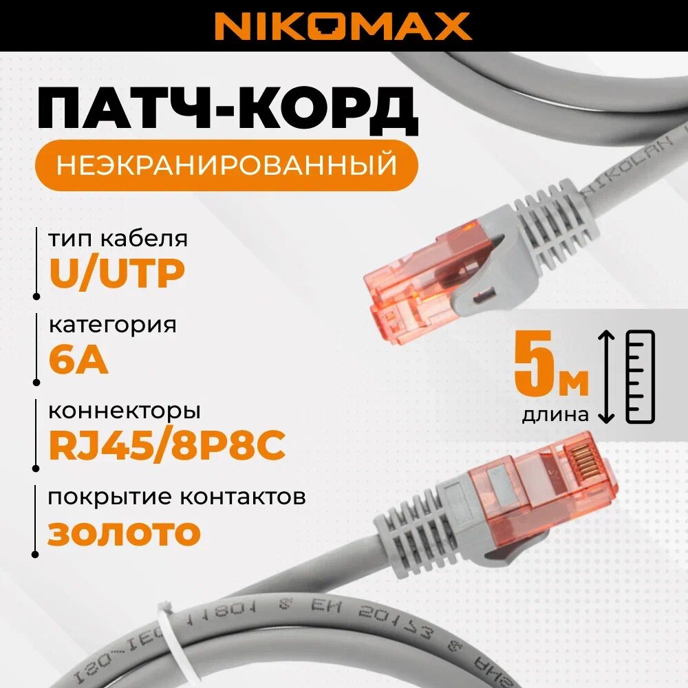 Кабель патч-корд U/UTP 6a кат. 5м NikoMax NMC-PC4UA55B-ES-050-C-GY