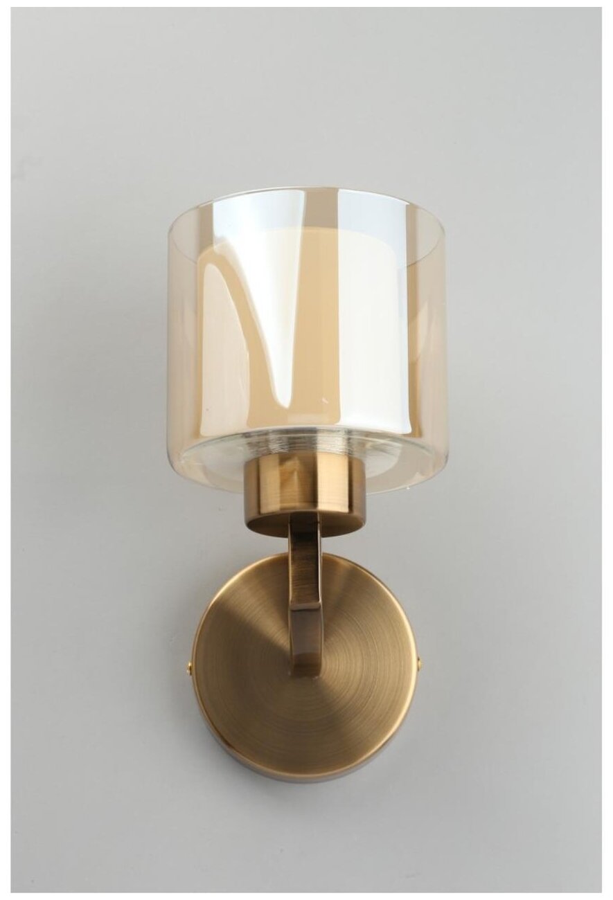 Светильник выполнен в стиле модерн. Бра находится в гармонии с пространством, выглядит весьма элегантно. Стеклянный плафон цилиндрической формы смотрит вверх, тем самым в пространстве создается уют. Светильник украсит любой интерьер оригинальным освещением. Бра замечательно будет смотреться в гостиной комнате в качестве дополнительного освещения.