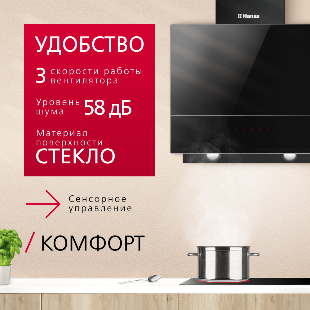 Каминная вытяжка Hansa создана для тех, кто ценит европейское качество. Вытяжка оснащена современной системой LED-освещения для того, чтобы подарить вам уникальную атмосферу на кухне. Благодаря функции отсрочки отключения, вытяжка выключается автоматически через заданное время или через 15 минут по умолчанию.