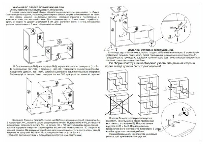 При сборке конструкции каждая полочка должна быть установлена в горизонтальном положении.