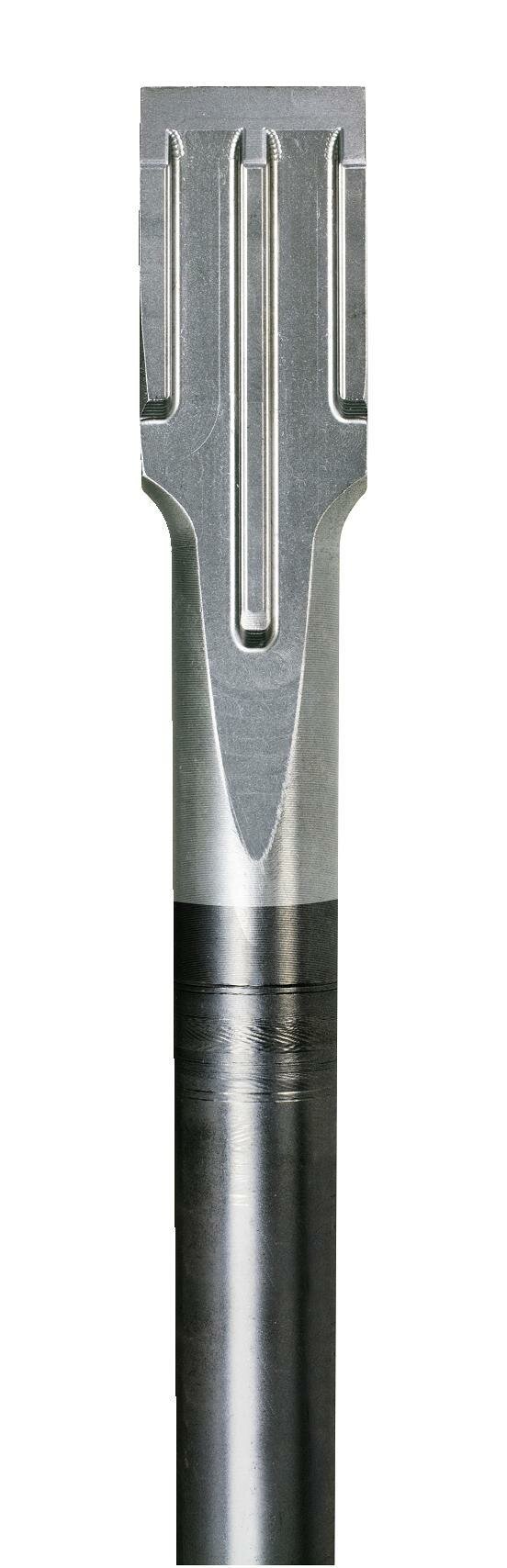 Специальная геометрия острия предотвращает заклинивание инструмента в материале и обеспечивает длительную сохранность остроты. , Использование двух различных видов стали ствола и острия гарантируют наилучшие показатели переноса энергии удара, износостойкости и долговечности. , Высокотехнологичная ковка обеспечивает сохранность структуры материала при работе.