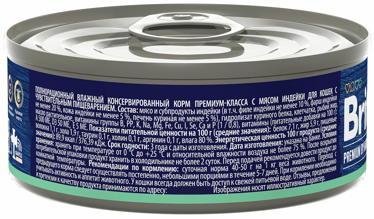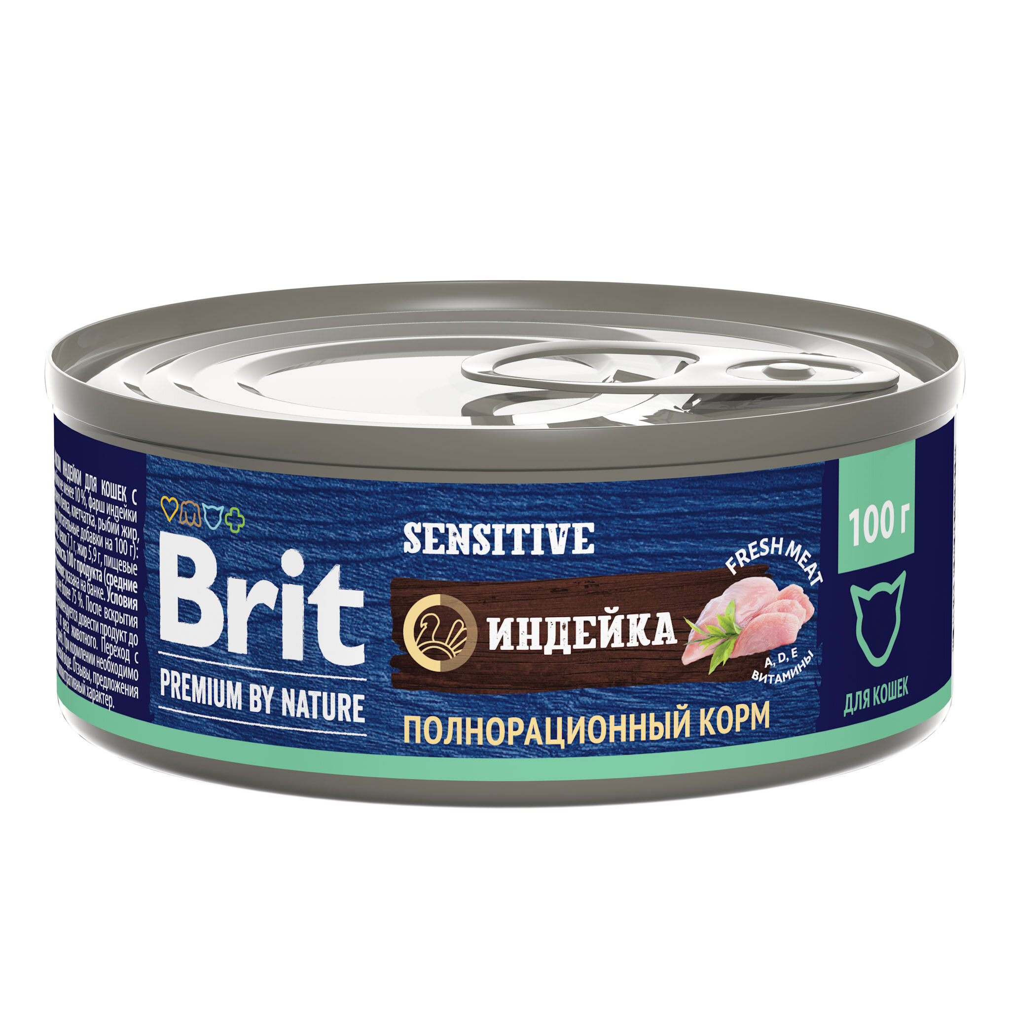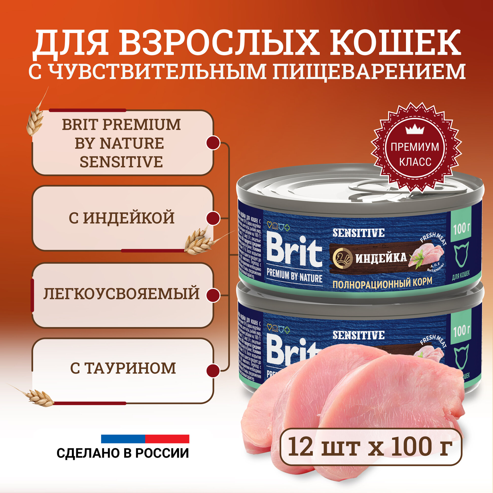 Полнорационный консервированный корм премиум класса с индейкой для взрослых кошек с чувствительным пищеварением