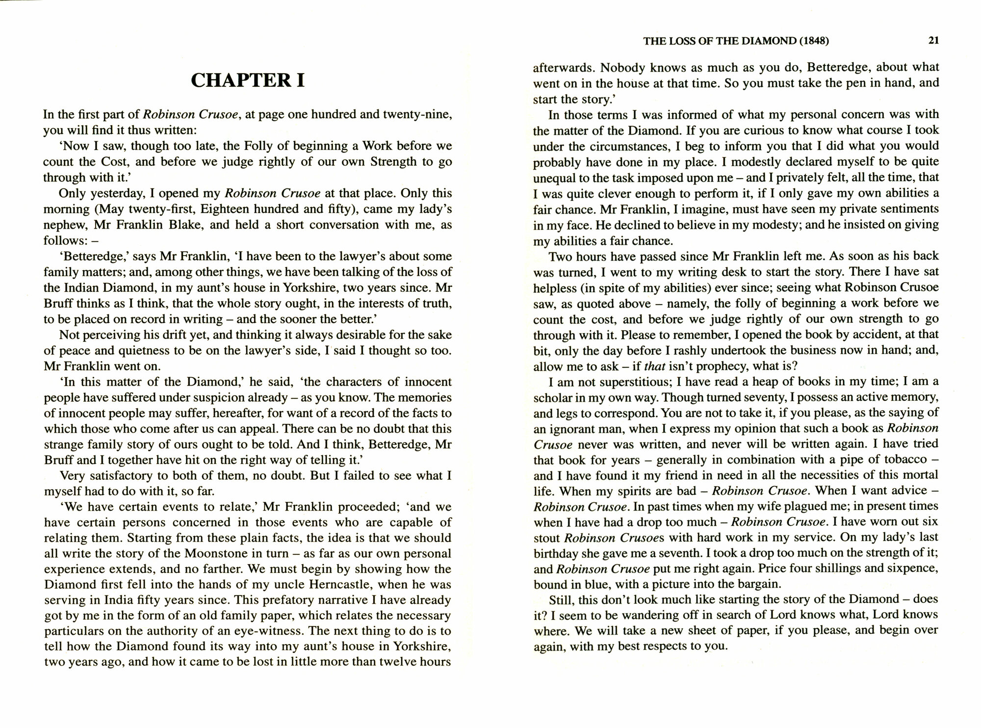 The Legendary Moonstone diamond is given to spirited Rachel Verinder on her eighteenth birthday, the gift of an uncle who came by it dishonestly. Originally plundered from a sacred statue in an Indian temple, the diamond is said to bring misfortune to those who prevent its return to its spiritual guardians.