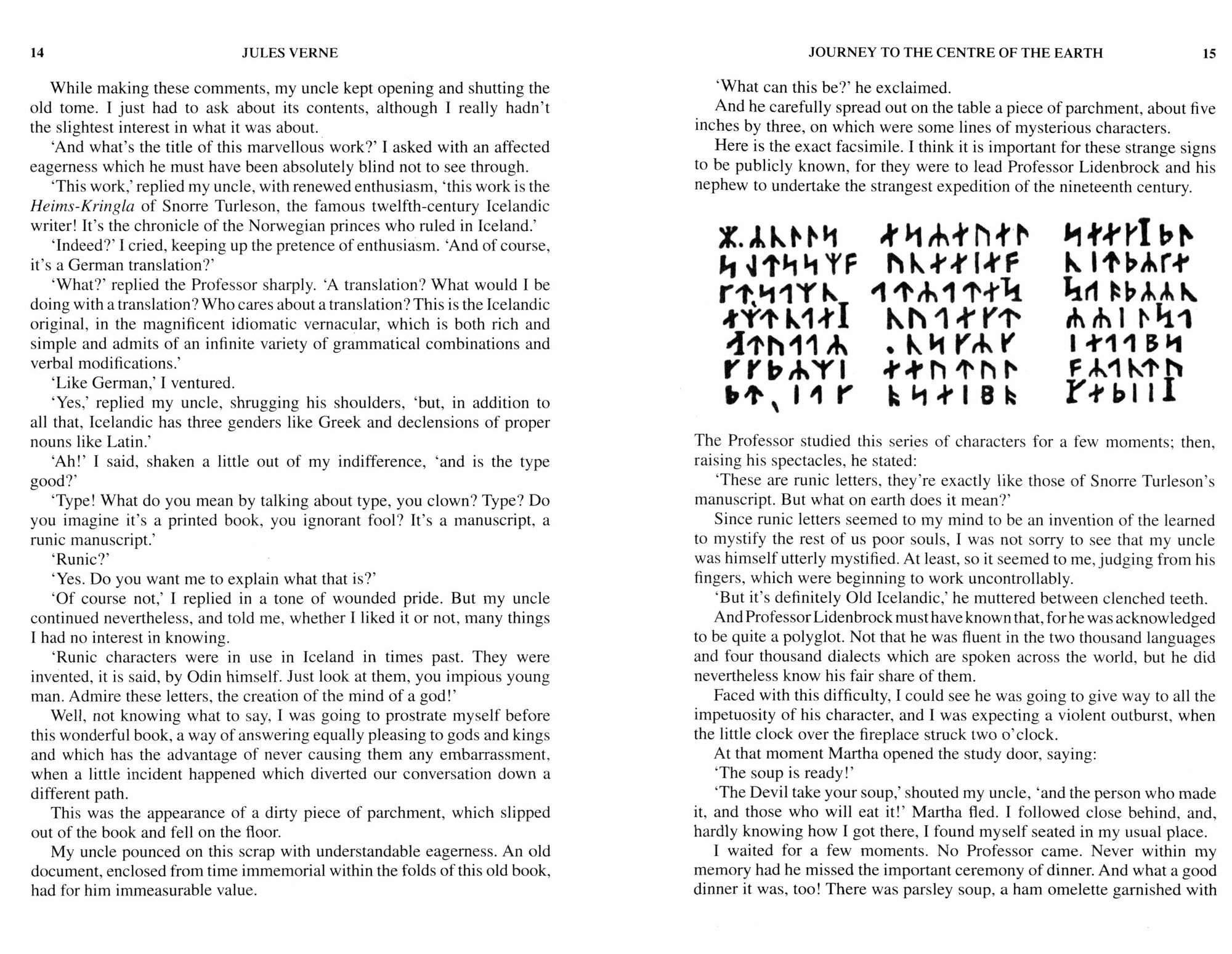 Professor Otto Lidenbrock's great adventure begins by chance when a scrap of paper drops out of an ancient book he has just bought. The coded inscription reveals the existence of a passageway leading to the centre of the earth and that the entrance lies within the crater of an extinct volcano in Iceland.