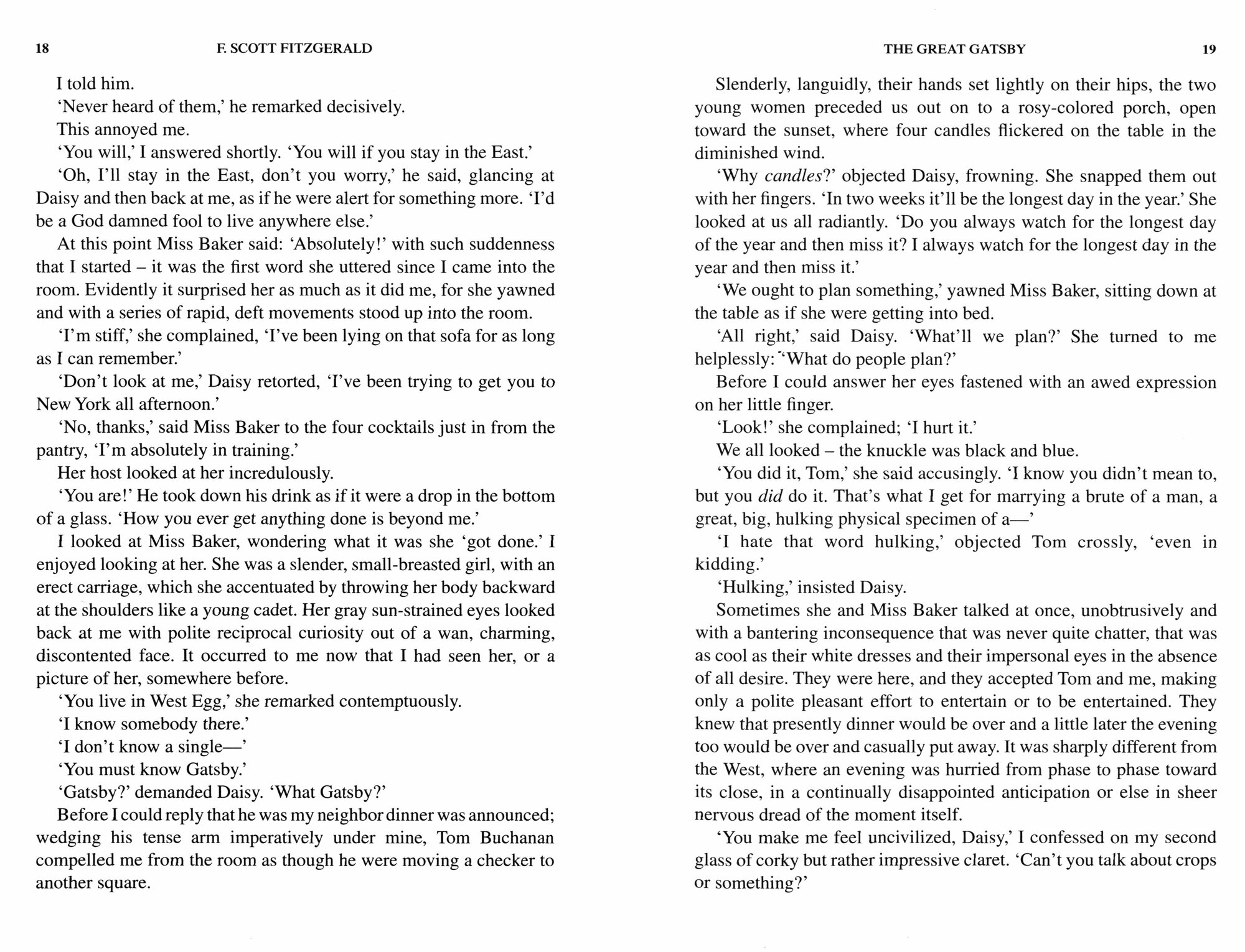 The Great Gatsby is F. Scott Fitzgerald's classic novel of the American Jazz Age. It is the story of a fundamentally innocent man drawn into his own destruction through infatuation with a girl called Daisy, whose voice is 'full of money'.
