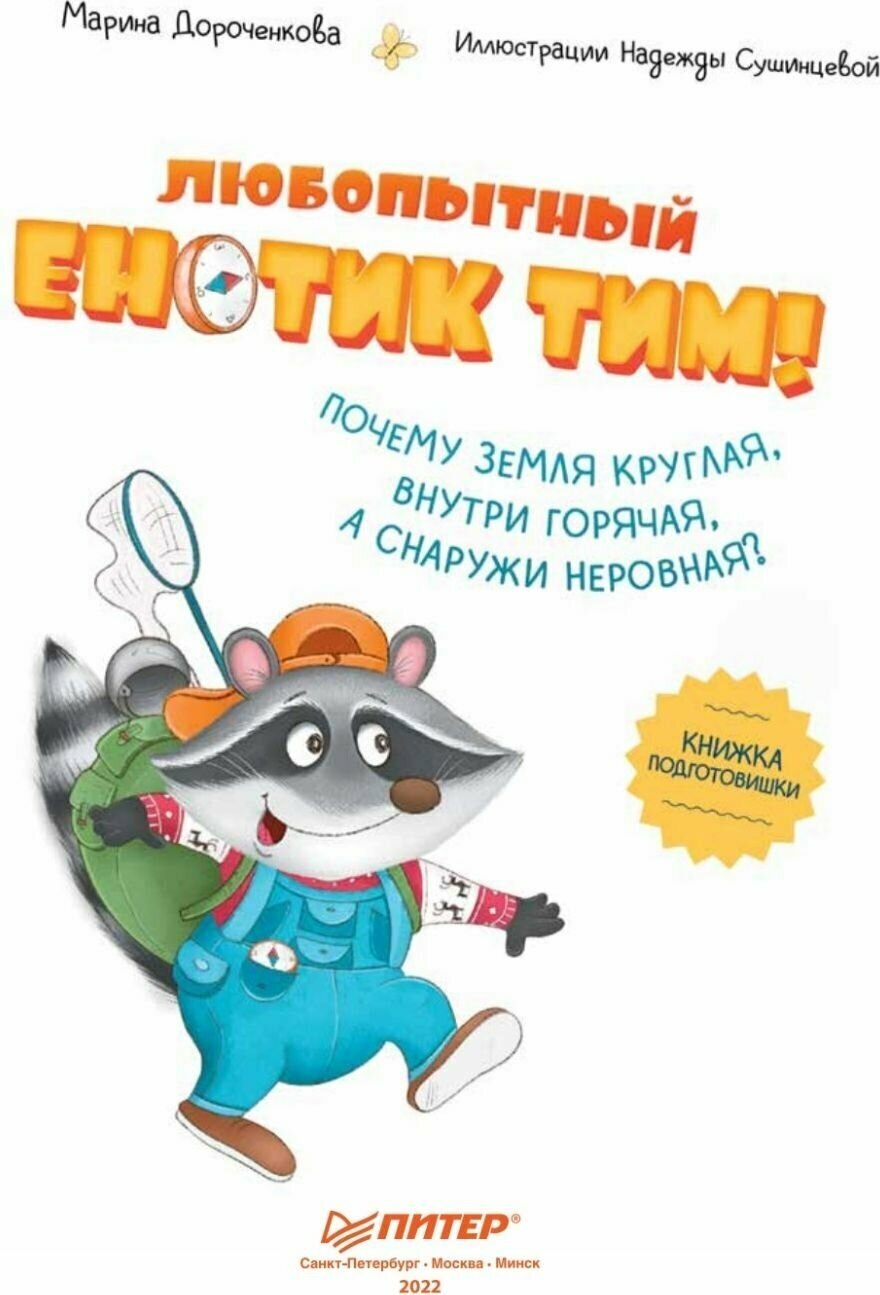 Любопытный енотик Тим! Почему Земля круглая внутри горячая а снаружи неровная? Книжка подготовишки (Дороченкова Марина Сергеевна, Сушинцева Надежда Анатольевна); Питер, 2022