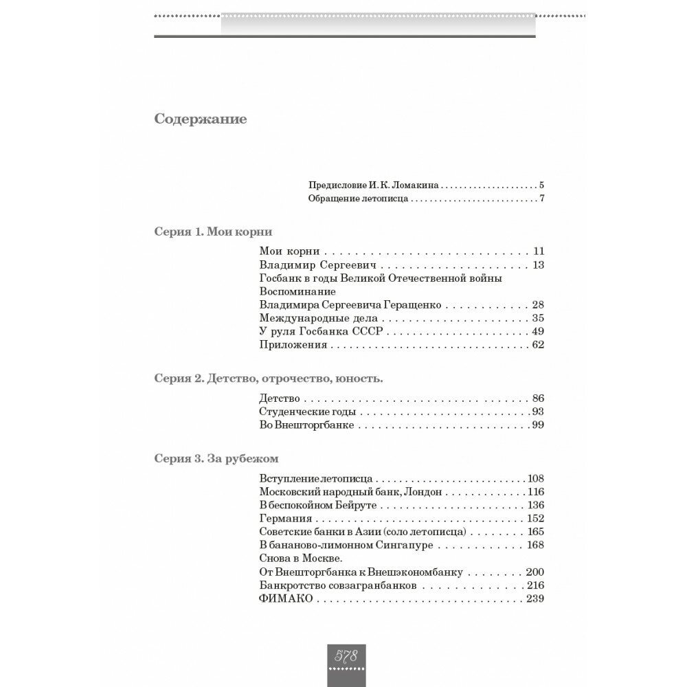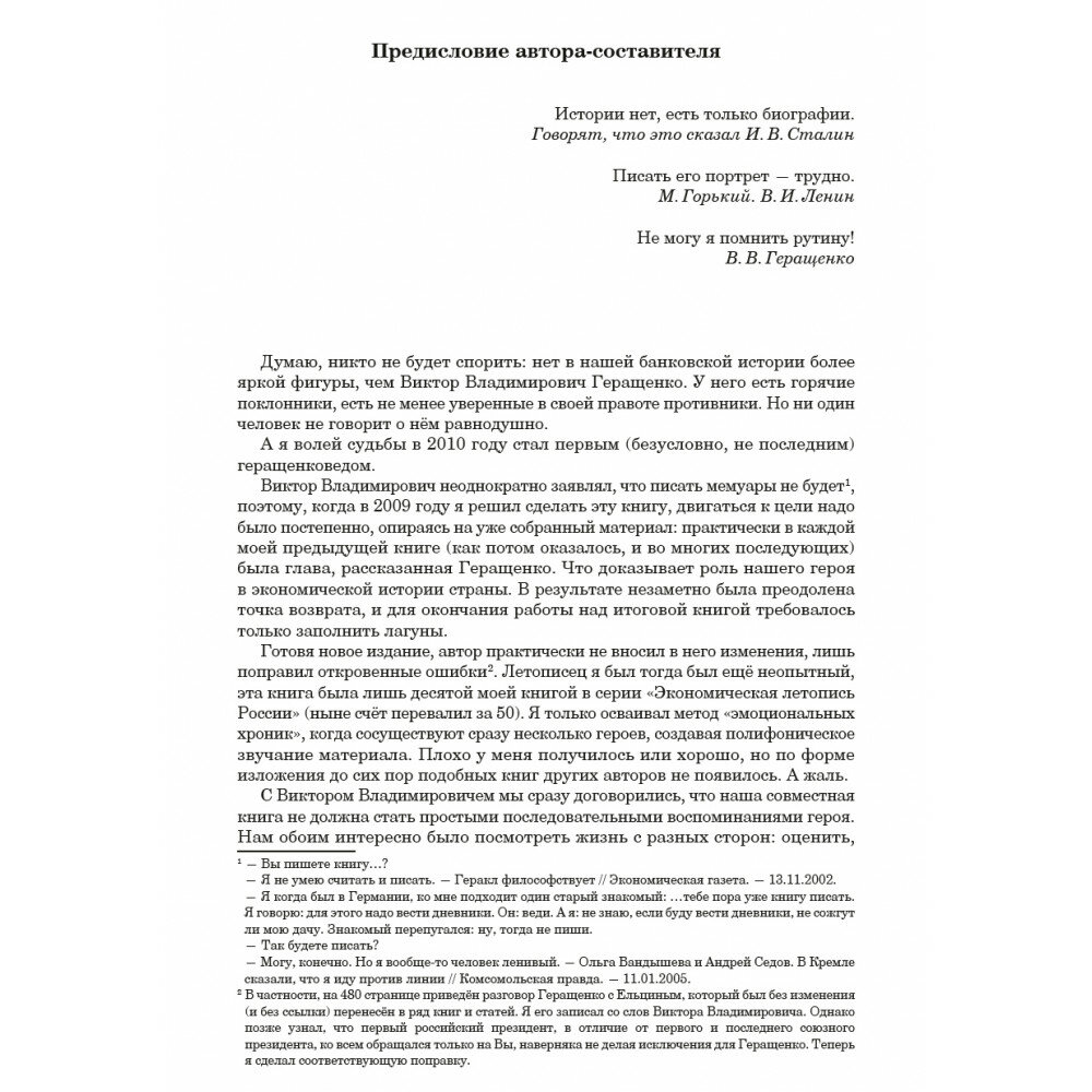 Эта книга — неформальный рассказ о своей жизни и жизни своего отца самой яркой фигуры в нашей банковской истории Виктора Владимировича Геращенко. Правдивость повествования подтверждают свидетельства коллег, правительственные и банковские документы, подборки статей из периодической печати.