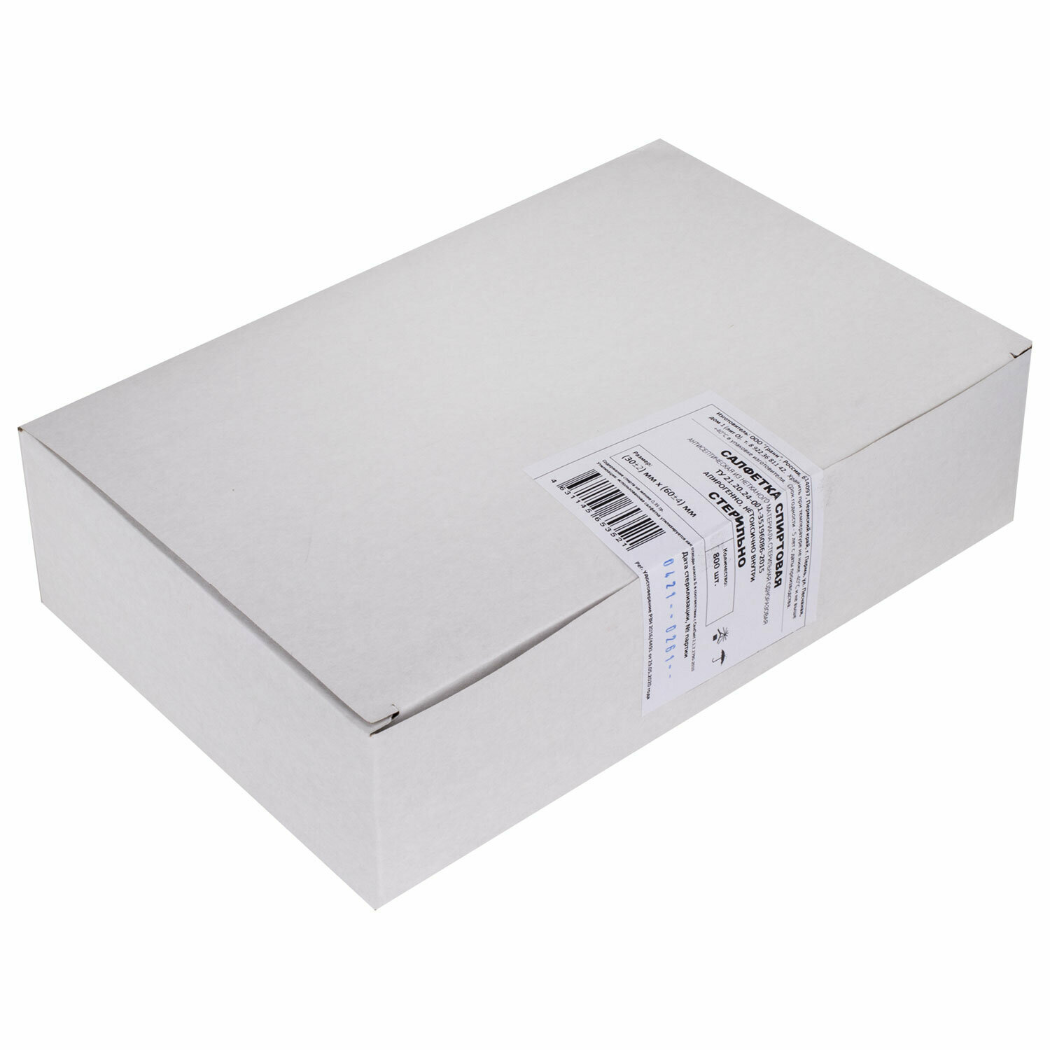 Салфетки спиртовые антисептические из нетканого материала стерильная одноразовая 30х60мм 800шт ООО Грани (2239674)