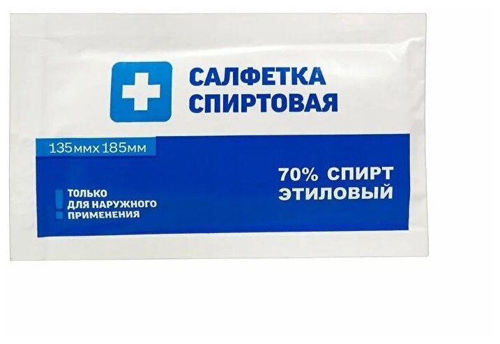 Состав Салфетка изготовлена из материалов: нетканая основа - полотно нетканое гидросплетенное Спанлейс поверхностной плотности не менее 40 г./кВ. м; пропиточный раствор - раствор этилового спирта для наружного применения и приготовления лекарственных форм 70%.Описание салфетки спиртовые антисептические стерильные одноразовые - из нетканного материала Размер: 135±10 мм х 185±10 мм Салфетка упакована герметично термическим методомв индивидуальную упаковку изготовленную из материала комбинированного на бумажной основе (бумага, алюминиевая фольга, полиэтилен). В салфетке содержится не менее 2,7 г раствора спирта. Групповая упаковка - зип-пакет по 50 шт. Салфетки антисептические спиртовые обладают дезинфицирующим действием, подавляют рост грамотрицательной и грамположительной микрофлоры, грибов, патогенных простейших, вирусов. Коагулирует белки.Показания Салфетки спиртовые предназначены для местного применения в качестве антимикробного и дезинфицирующего средства при обработке кожных покровов (дезинфекции мест проколов) до и после постановки инъекций, заборов крови, мелких порезов и ссадин, а также для гигиенической и санитарной обработки рук и дезинфекции небольших поверхностей. Спиртовые салфетки применяются: -в клинических и поликлинических учреждениях; -в детских школьных и дошкольных учреждениях; -в дорожных, полевых и бытовых условиях; -на производственных предприятиях и предприятиях общественного питания.Противопоказания Противопоказаний к применению нет.Способ применения и дозы -Гигиеническая обработка рук. Однократная обработка: вскрыть пакет, быстро достать и развернуть салфетку, а затем тщательно протереть салфеткой руки. Время выдержки после окончания обработки -20-30 секунд или до полного высыхания. -Прединъекционная обработка кожных покровов. Однократная обработка: вскрыть пакет, быстро достать и развернуть салфетку, а затем тщательнопротереть салфеткой кожу инъекционного поля. Время выдержки после окончания обработки - 30 секунд или до полного высыхания. -Обработка локтевых сгибов доноров. Двукратная обработка: вскрыть пакет, быстро достать и развернуть салфетку, а затем тщательно протереть салфеткой кожу локтевого сгиба двукратно, используя раздельные салфетки. Время выдержки после окончания обработки - 2 минуты. -Обработка операционного поля, в том числе перед введением катетеров и пункций суставов. Двукратная обработка: вскрыть пакет, быстро достать и развернуть салфетку, а затем тщательно протереть салфеткой операционное поле или место пункции. Время обработки - 20-30 секунд. Обработку повторить с использованием новой салфетки. Время выдержки после окончания обработки - 2 минуты. -Частичная санитарная обработка кожных покровов. Однократная обработка: вскрыть пакет, быстро достать и развернуть салфетку, а затем тщательно протереть салфеткой участки кожных покровов, подлежащих обработке. Время выдержки после окончания обработки.