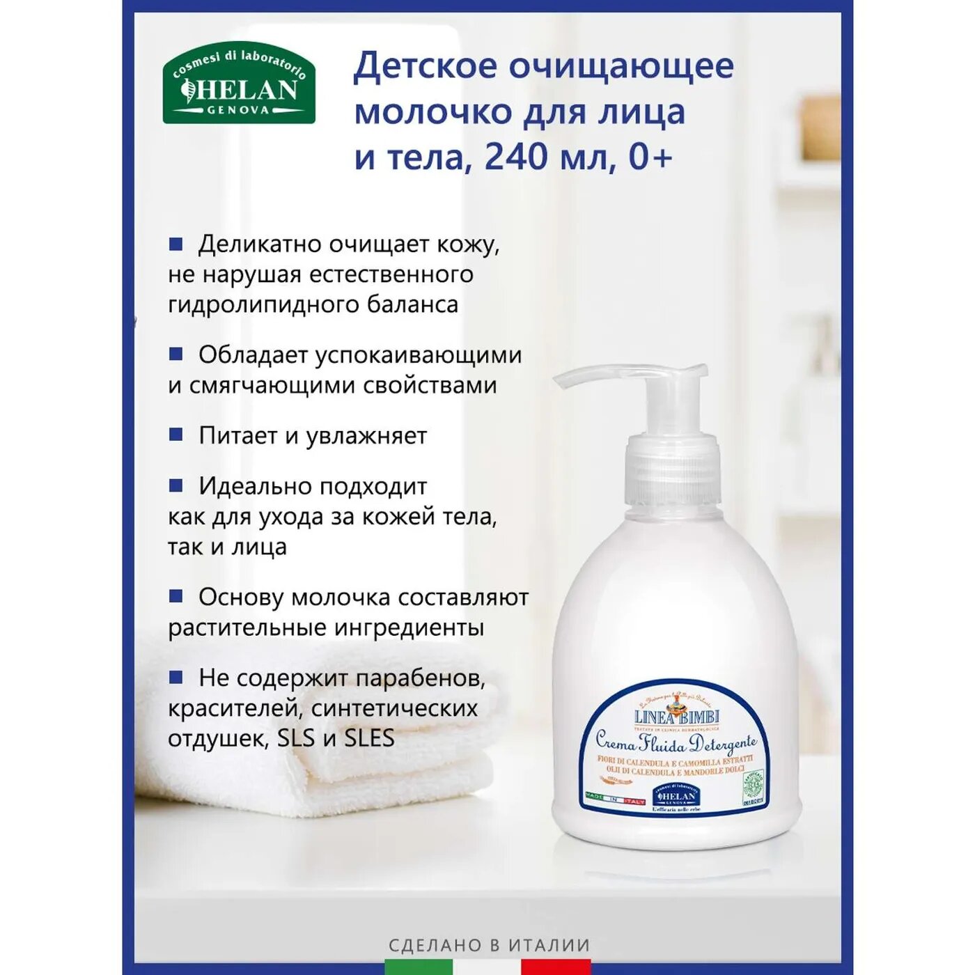 Молочко для лица и тела детское Helan Linea Bimbi очищающее 240мл Детское очищающее молочко для лица и тела (Linea Bimbi) - 240 мл.