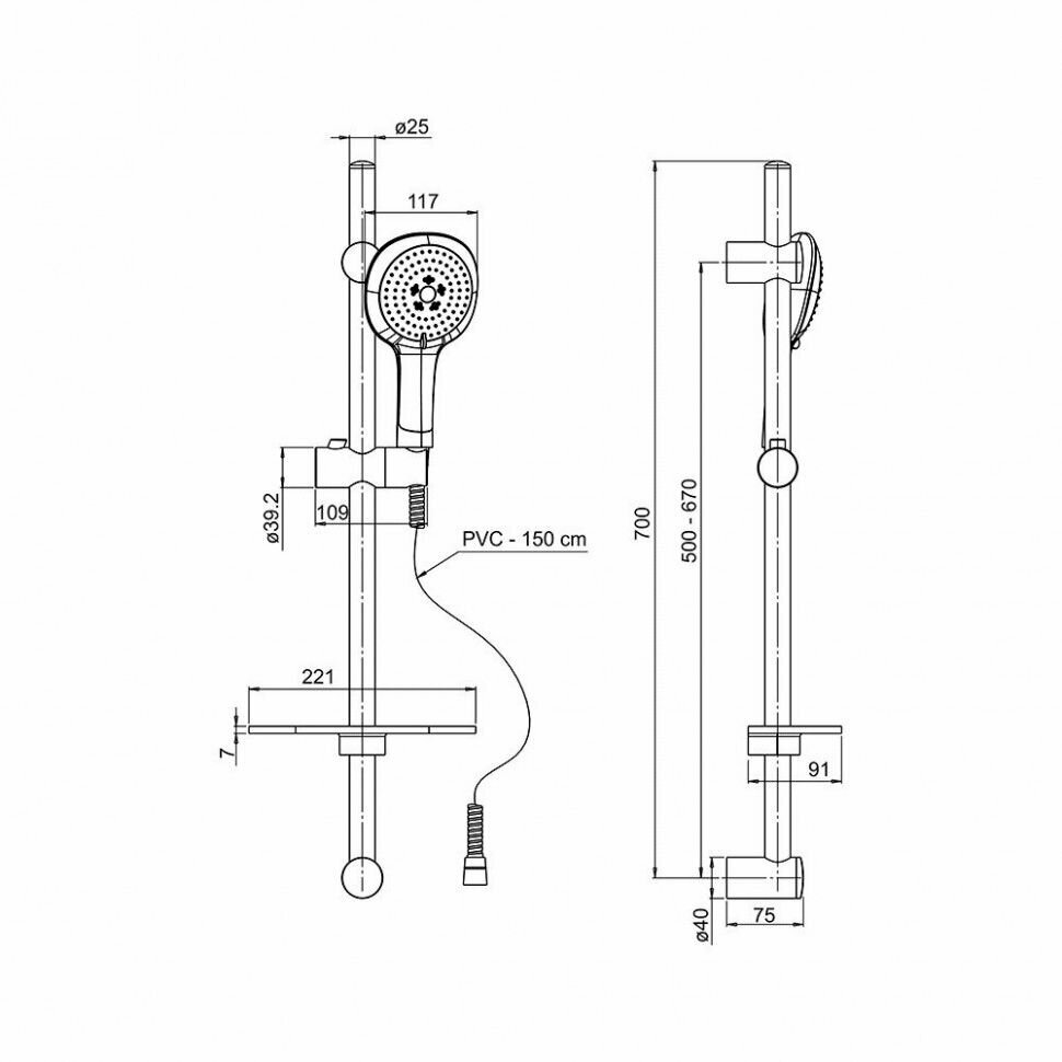 | Оснащение | душевая штанга, держатель для душа, душевой шланг |