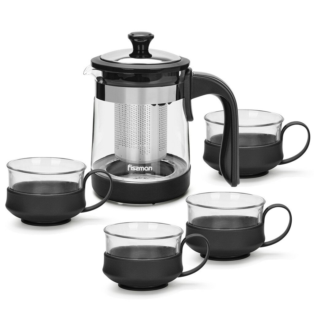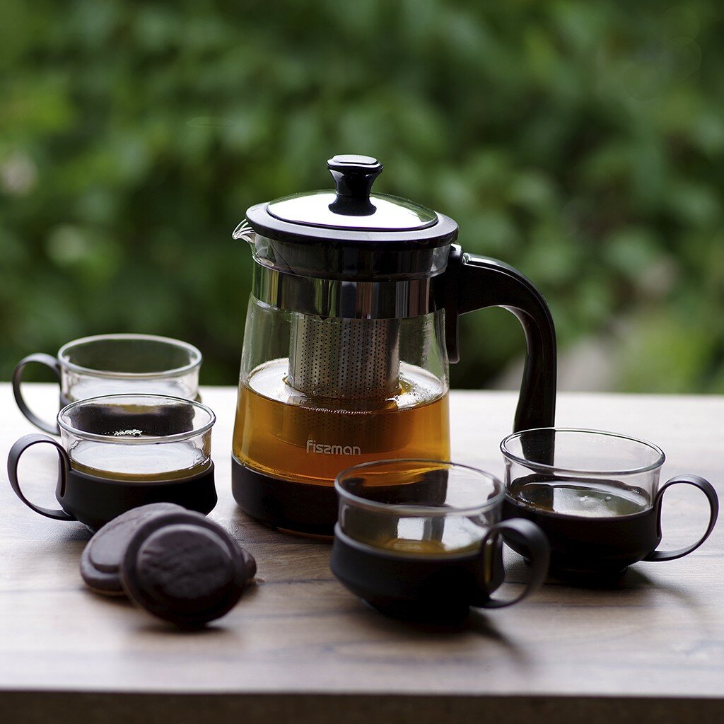 Чайный набор от компании Fissman изготовлен по современной технологии из особо прочного боросиликатного стекла. В набор входит заварочный чайник и 4 чашки. Для любителей зеленых или связанных цветущих чаев этот чайный набор станет поистине незаменимым, а также он обладает неоспоримыми преимуществами: