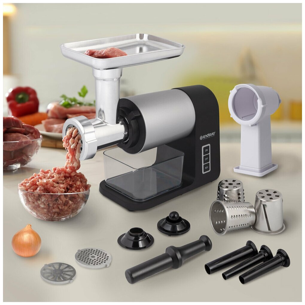 Готовьте по своим любимым рецептам с уникальной электрической мясорубкой ENDEVER ! Эта модель за несколько минут поможет Вам приготовить: фарш для приготовления гамбургеров, фрикаделек, сосисок, колбас, кебаб, фарш для вегетарианских блюд, хумуса и многое-многое другое.