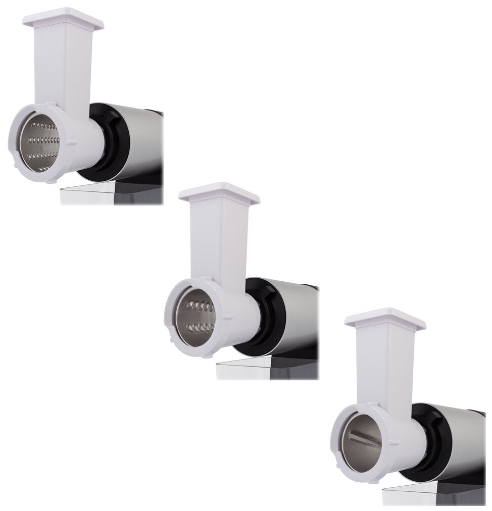 - набор насадок, которые на 100% изготовлены из экологичного материала и идеально подходят для обработки любых пищевых продуктов. Кроме основной насадки, комплект включает насадку для приготовления колбасных изделий и насадку- мультирезку для измельчения овощей;