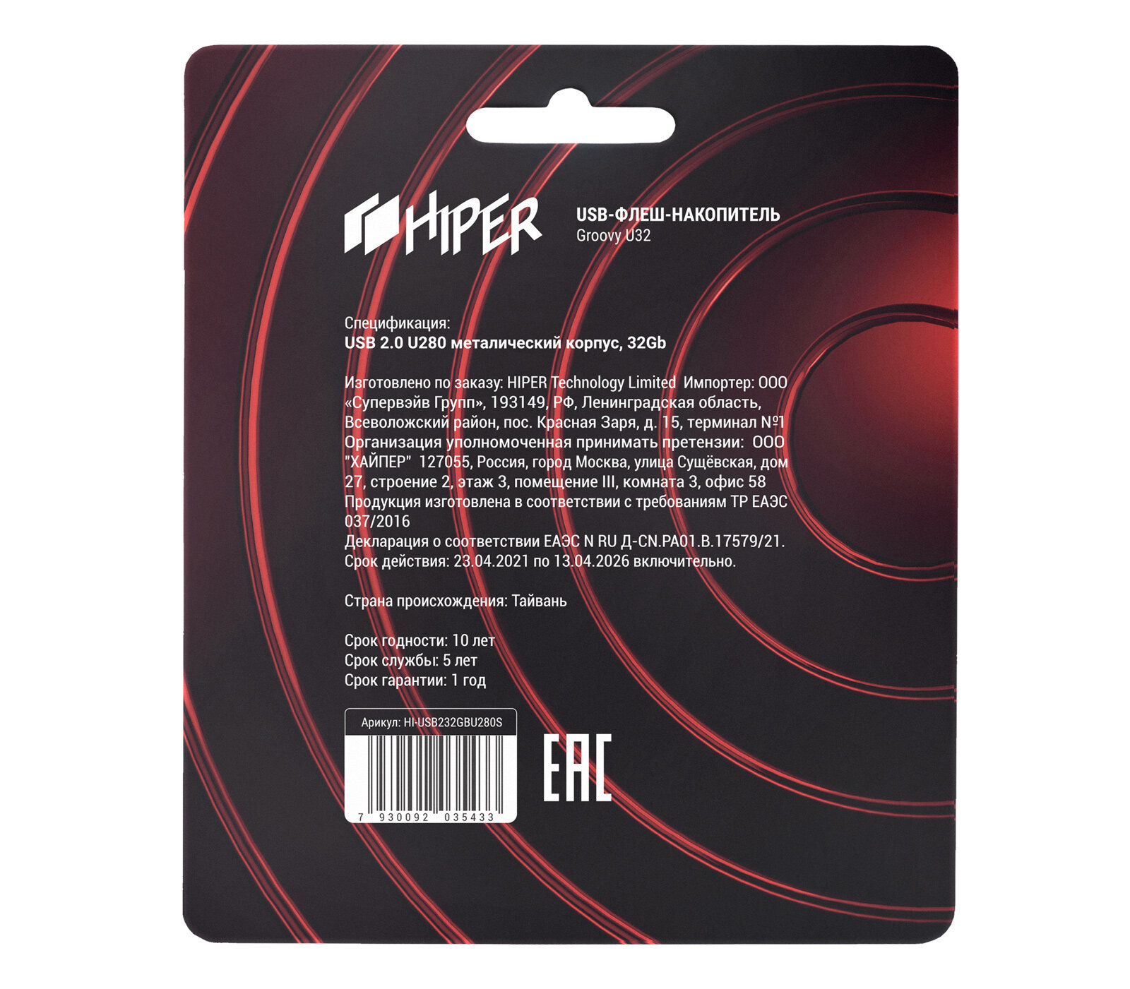Накопитель USB 2.0 32GB HIPER Groovy U32