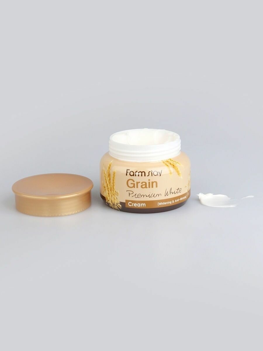 Осветляющий крем FarmStay Grain Premium White Cream с маслом ростков пшеницы увлажняет, осветляет, замедляет процесс старения. Масло ростков пшеницы замедляет старение кожи на клеточном уровне, обладает противовоспалительным эффектом, стимулирует обменные процессы.