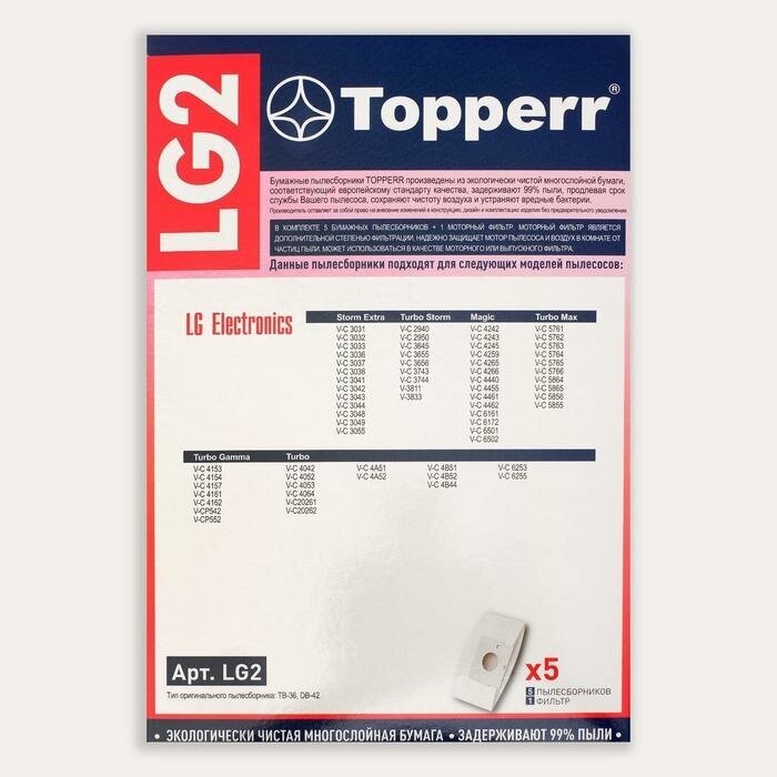 Бумажные пылесборники для пылесосов LG ELECTRONICS от Topperr это экологичное решение для вашего дома. Воздух, которым мы дышим, содержит бесчисленное множество бактерий и микроорганизмов. Поэтому так важно регулярно пылесосить. Но способны ли обычные пылесборники обеспечить чистоту воздуха в вашем доме? Бумажные пылесборники для пылесосов LG ELECTRONICS от Topperr это гарантия чистого воздуха в вашем доме.