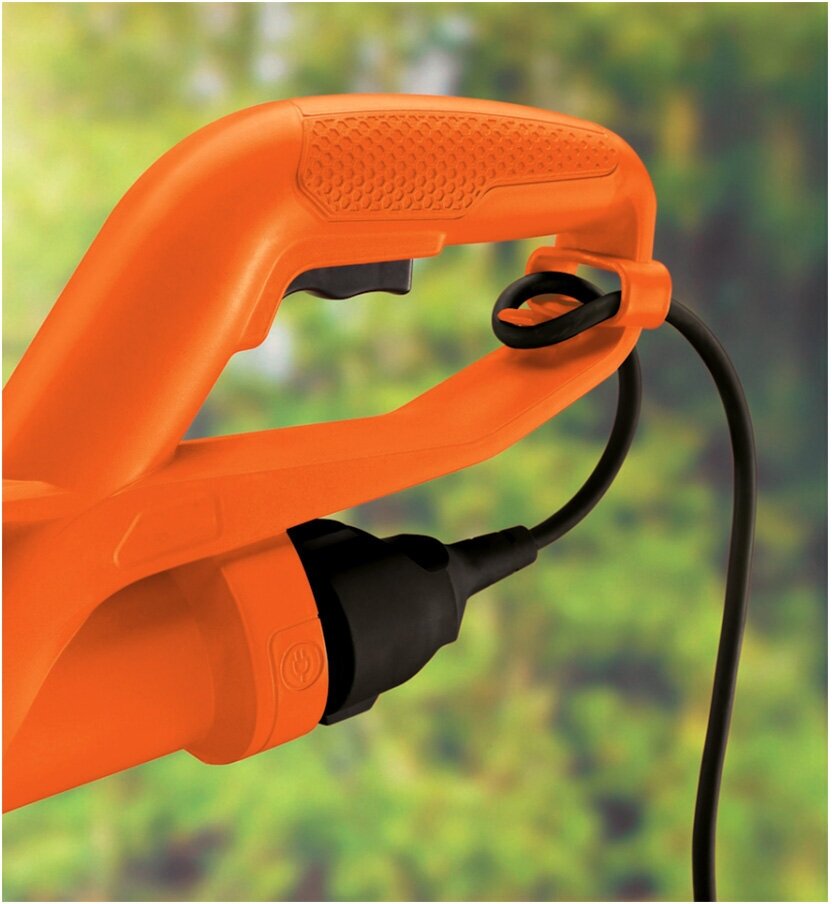 Легкая и компактная электрокоса Black & Decker предназначена для работы на газонах небольшого размера. Режущий элемент – леска в 1,5 мм, заменяется вручную. Мотор мощностью 250 Вт расположен на нижней части устройства и защищен кожухом от выброса мусора и травы. Также кожух предохраняет и пользователя от случайных травм.