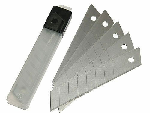 Набор включает в себя 10 сегментированных лезвий для ножей в контейнере. Лезвия выполнены из высококачественной инструментальной стали.