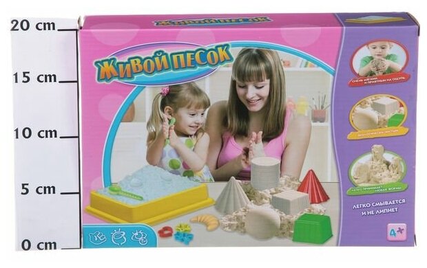 В наборе: живой песок (300 г.),10 формочек,3 лопатки.