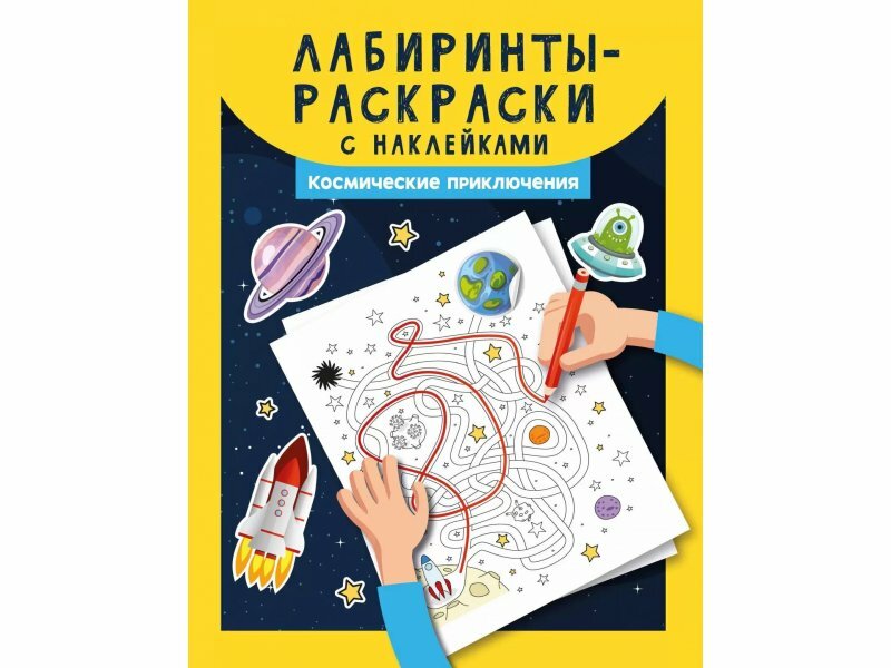 Скорее садись в звездолёт и лети навстречу далеким галактикам и неизведанным планетам. Проходи лабиринты и помогай космическим монстрикам чинить инопланетный транспорт, космонавтам - выбирать нужную ракету, дрону - не столкнуться с космическими пиратами. Ты встретишься с роботами, НЛО, чёрной дырой и забавными инопланетянами. В книге тебя ждут рисунки для раскрашивания, наклейки и запутанные дорожки различного уровня сложности.