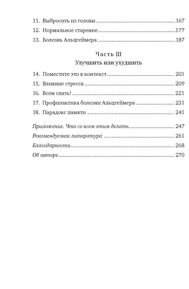 Данная книга рассказывает простым языком о сложных вещах. Автор помогает сформировать более здравый взгляд на свою память, понять, в чем её возможности и ограничения, различить проявления старения от симптомов Альцгеймера, даёт вполне здравые советы. Например, как используя контекст, улучшить качество воспроизведения материала. Многие факты, изложенные в тексте, отражают современные достижения науки о памяти. К покупке рекомендую.