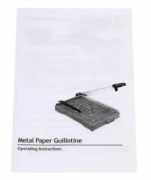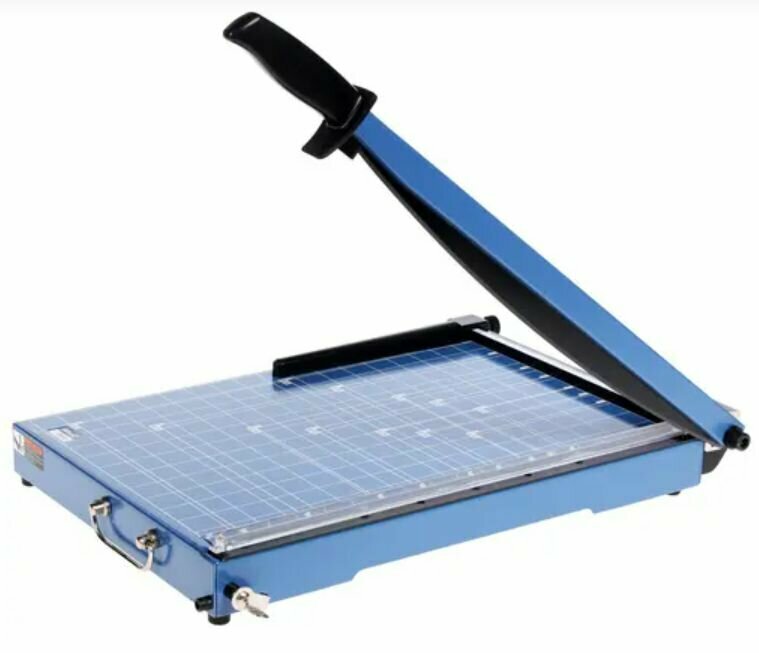 | Дополнительно | Большой металлический стол с разметкой форматов, Фиксация ножа в закрытом состоянии, Упор для бумаги (ограничительная планка), Ручка для переноски |