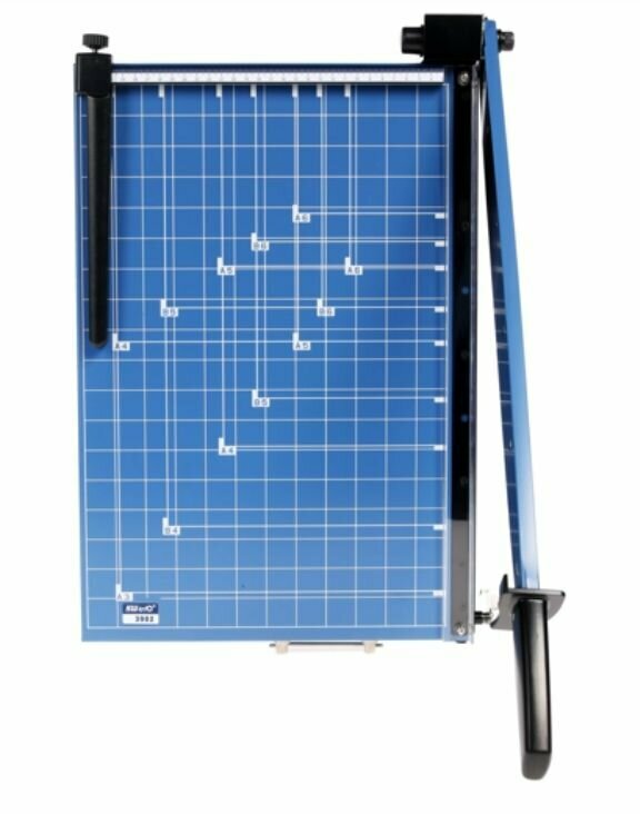 Сабельный резак Kw-Trio со стальной базой отличается повышенной долговечностью благодаря стальной базе и надежной конструкции. Применяется для резки бумаги при необходимости соблюдения высокой точности реза при высоте стопы до 1,5 мм. Рабочий стол резака имеет разметку в мм/дюймы, а также разметку форматов от А3 до А6. Отсутствует защитный экран.