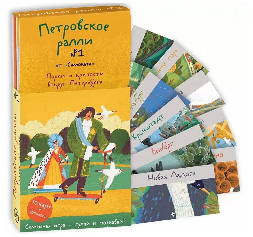 Оформление прекрасное: яркая и стильная графика. На картах отображены наиболее туристические места указанных окрестностей Петербурга - Выборга, Иваногорода, Приозерья, Петергофа, Кронштадта. Всего карт 10, к ним полагается брошюра, с помощью которой можно проверить ответы и узнать о территории ещё больше.
