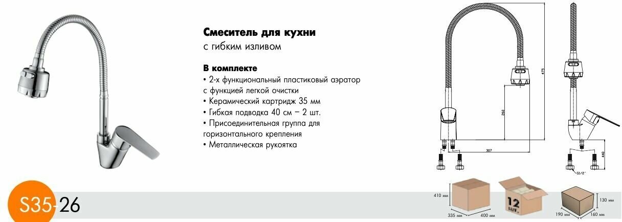 | Дополнительные функции | вращение излива, два режима аэратор/душевая струя |