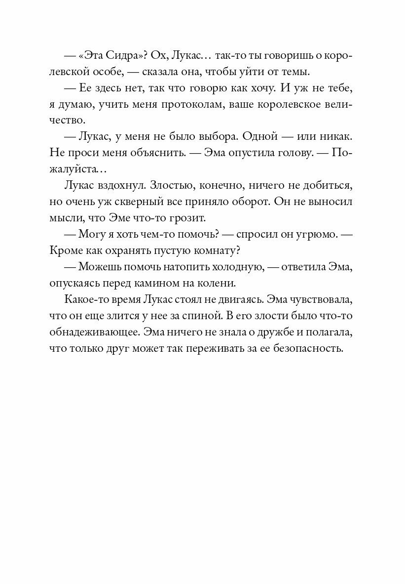 Во втором томе «Королевства Краеугольного Камня» история продолжается. После того как Эма заключает сделку с королевой Сидрой, Тибо возвращается из Гиблого леса, только он уже не тот, что прежде. Жизнь при дворе течёт своим чередом, но бедствия одно за другим сыплются на Краеугольный Камень. И что бы ни случилось — суровая зима, голод, холера — подданные винят в происходящем молодую темнокожую королеву-чужестранку. Для Эмы счастливое ожидание первеницы становится тревожным и мучительным, ведь она знает: грядёт час расплаты.