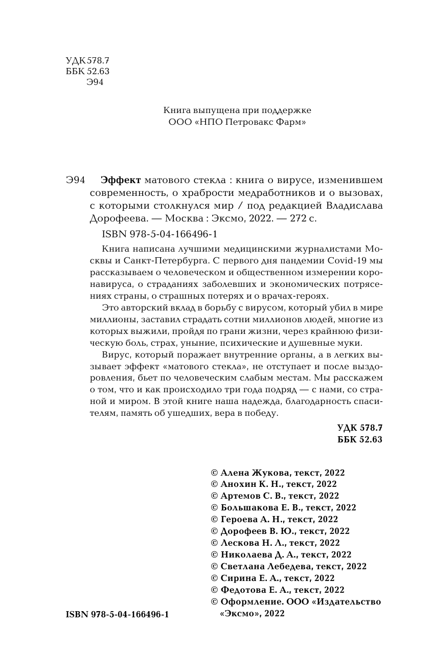 Эффект матового стекла. Книга о вирусе изменившем современность о храбрости медработников и о вызовах с которыми столкнулся мир (Под редакцией Владислава Дорофеева); ООО "Издательство "Эксмо", 2022