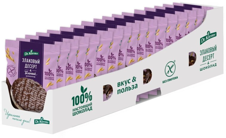 Сервис сравнения цен СкидкаГИД предлагает сравнить цены на товар «Десерт злаковый Dr.Korner Рисовый с темным шоколадом 34г»