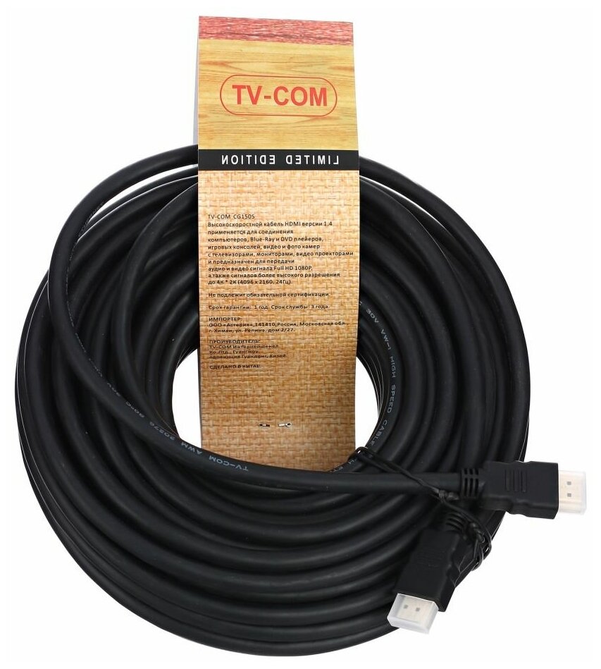 Кабель интерфейсный HDMI-HDMI TV-COM CG150S-20M
