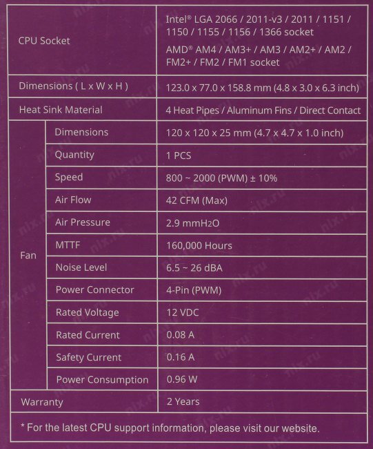 | Размеры кулера | 120 x 120 x 25 мм |