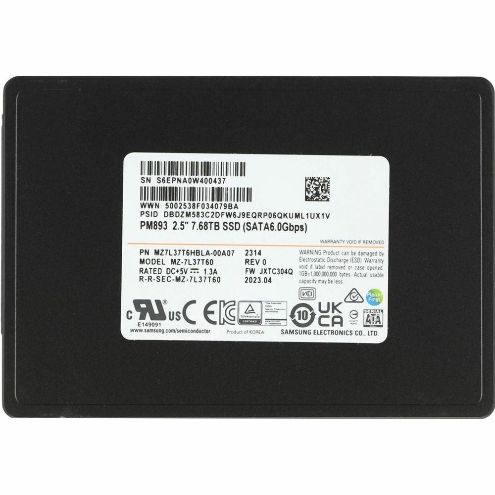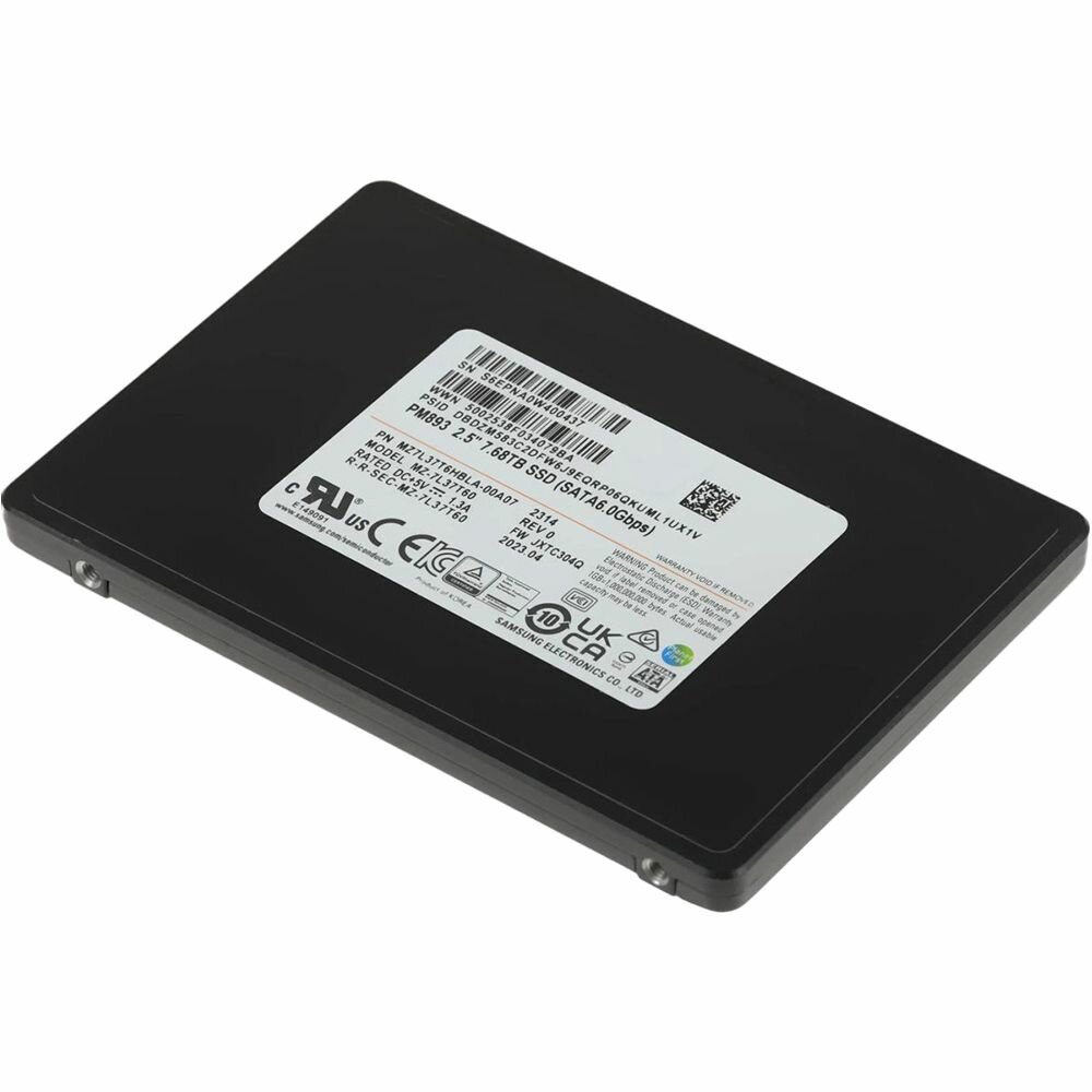 Накопитель SSD 2.5'' Samsung PM893 7.68TB SATA 6Gb/s V6 TLC V-NAND 560/530MB/s IOPS 98K/31K MTBF 2M 1.3 DWPD 7mm MZ7L37T6HBLA-00A07