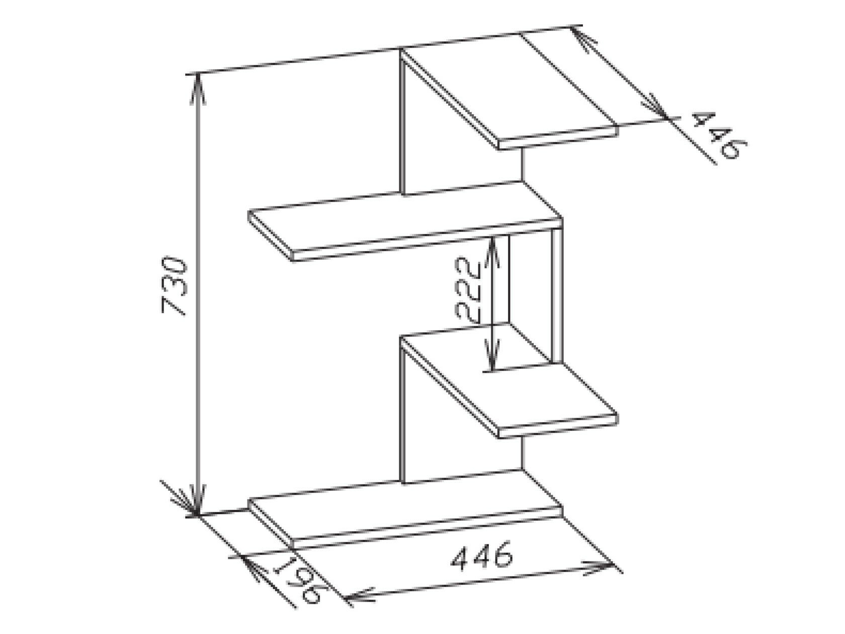 Габаритные размеры ВхШхГ 730x446x446 мм. Настенная полка ПК-7 поможет создать уютную обстановку в современном интерьере. Модель разместит сувениры, фото в рамках и другие предметы декора, визуально не загромождая пространство.